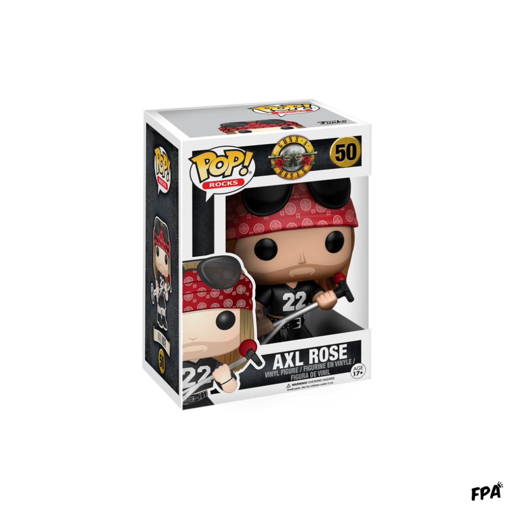From FUNKO POP! ROCKS: Guns N Roses - Axl Rose as a stylized POP vinyl from Funko! Figure stands 3 3/4 inches and comes in a window display box. Check out the other Guns N' Roses figures (Slash) from Funko! Collect them all!.