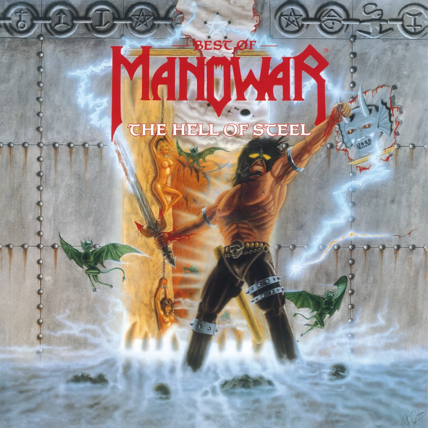 Manowar is an American heavy metal band from Auburn, New York. Formed in 1980, the group is known for lyrics based on fantasy and mythology as well as numerous songs celebrating the genre and it's core audience. In 1984, the band was included in the Guinness Book of World Records for delivering the loudest performance, a record which they have since broken on two occasions. The Hell of Steel: Best of Manowar is a compilation album and was released in 1994 by Atlantic Records. It features 14 tracks from their albums released under Atlantic (Fighting the World, Kings of Metal and The Triumph of Steel). The song "Herz Aus Stahl" is a German version of their track "Heart of Steel" The Hell Of Steel compilation is now available on black vinyl.